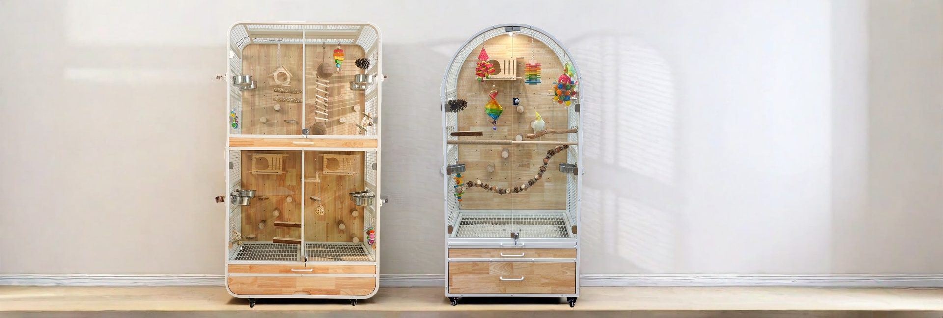 Bring elegance and comfort to your home with our premium metal-and-wood bird cage. Designed with high-end materials and thoughtful craftsmanship, it offers a safe, spacious, and beautiful living space for your birds — and a stunning décor piece for your home.